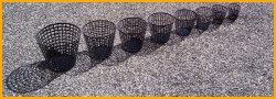 A complete line of plastic horticultural pots and baskets for the garden.